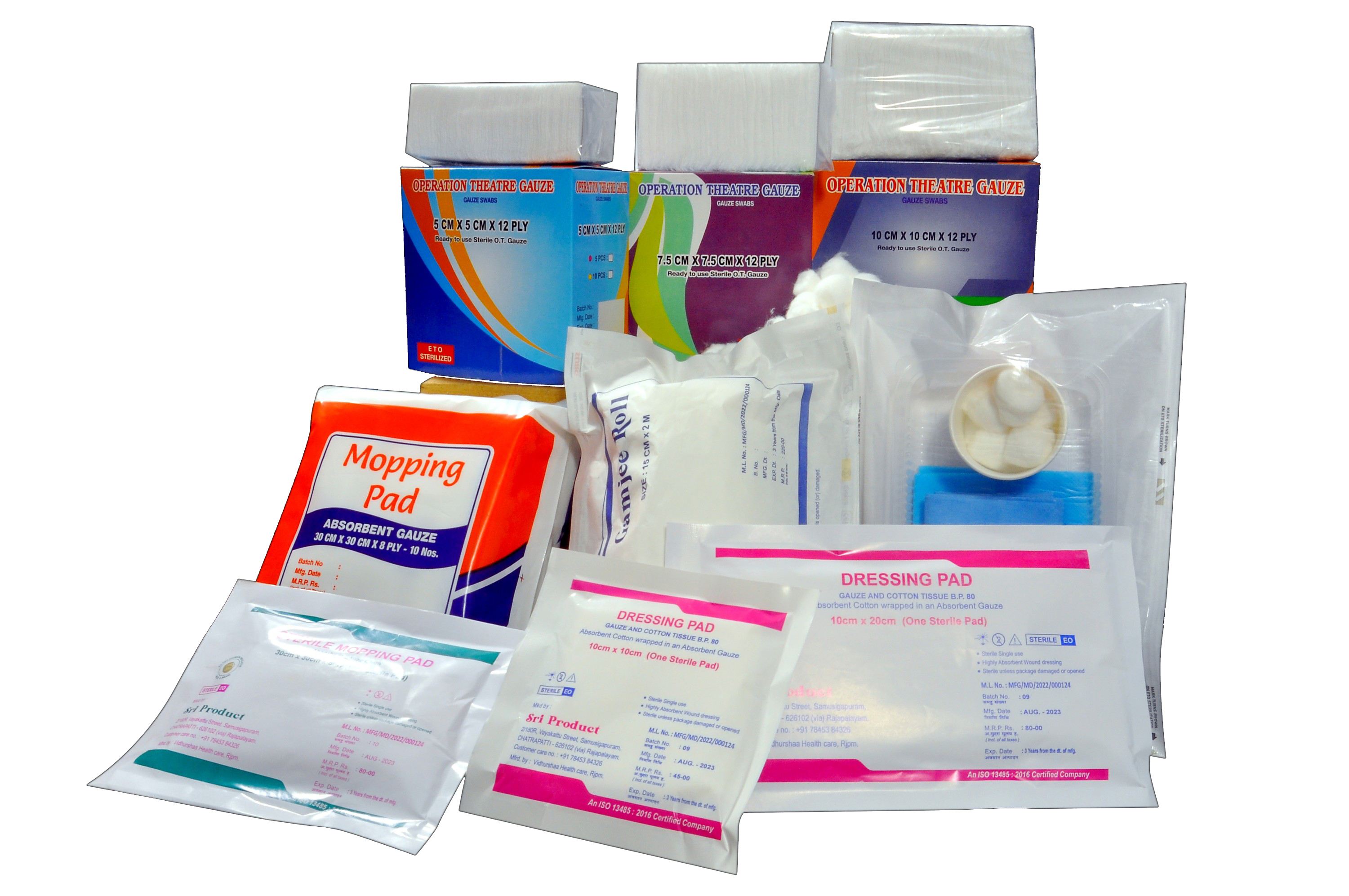 Sri Product is a leading manufacturer and supplier of medical-grade products. Our offerings include sterile gauze swabs, cotton balls, absorbent bandages, dressing kits, and more. By partnering with medical professionals and understanding their challenges, we deliver innovative, high-quality solutions. With a commitment to excellence, we adhere to ISO 13485:2016 standards, ensuring top-notch quality and reliability.