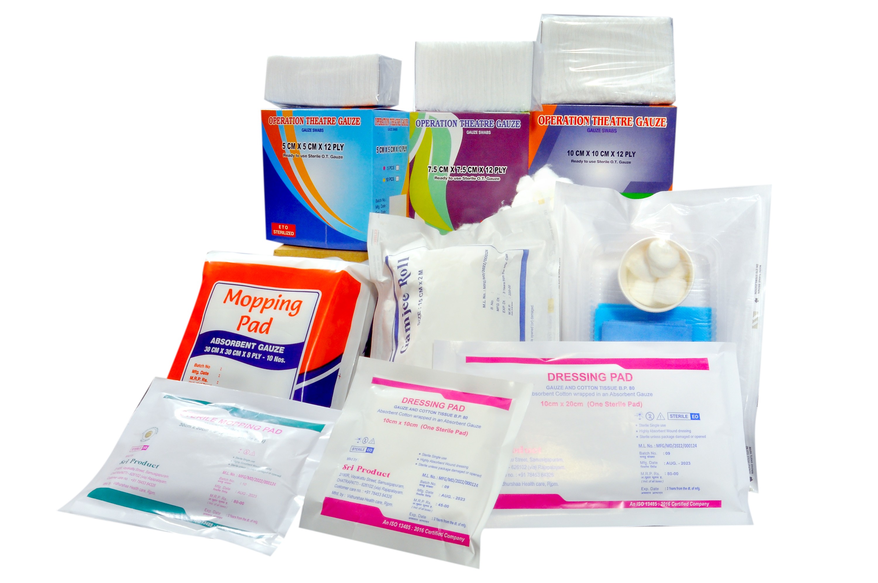 Sri Product is a leading manufacturer and supplier of medical-grade products. Our offerings include sterile gauze swabs, cotton balls, absorbent bandages, dressing kits, and more. By partnering with medical professionals and understanding their challenges, we deliver innovative, high-quality solutions. With a commitment to excellence, we adhere to ISO 13485:2016 standards, ensuring top-notch quality and reliability.